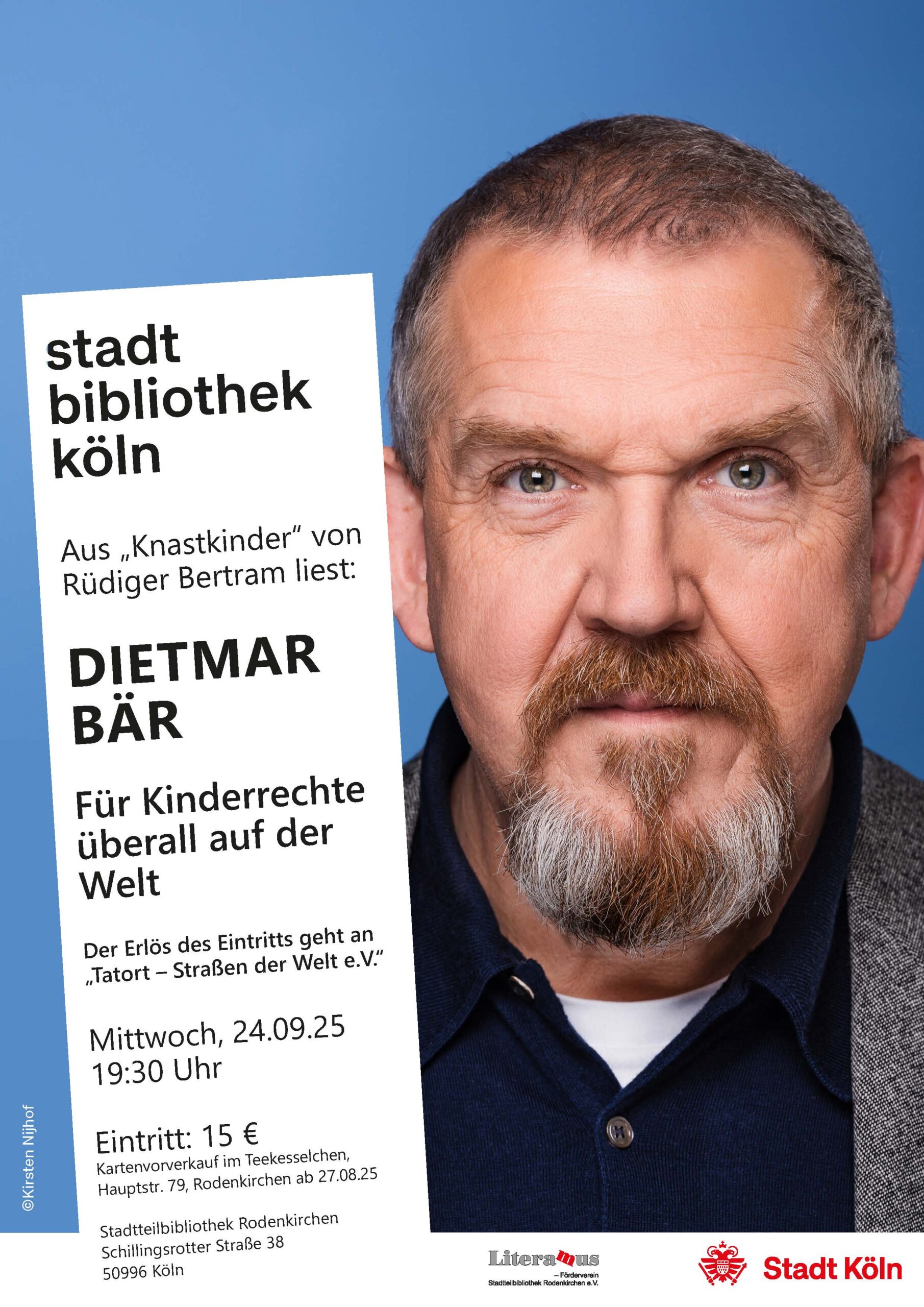 aus dem Buch des Kölner Autors Rüdiger Bertram „Knast Kinder“, in dem es um das grausame Dasein von Kindern in einem Gefängnis von Manila geht. Das Schicksal der Straßenkinder auf den Philippinen, mit dem Dietmar Bär und seine Schauspielerkollegen dort bei einem Tatort-Dreh konfrontiert wurden, war letztendlich Anlass zur Gründung des Vereins „Tatort – Straßen der Welt e.V.“ um Kindern zu helfen, die keine Rechte haben. Denn Kinder, die ausgebeutet werden, unter Hunger leiden, Gewalt erleben und nicht lernen dürfen, gibt es in vielen Ländern.